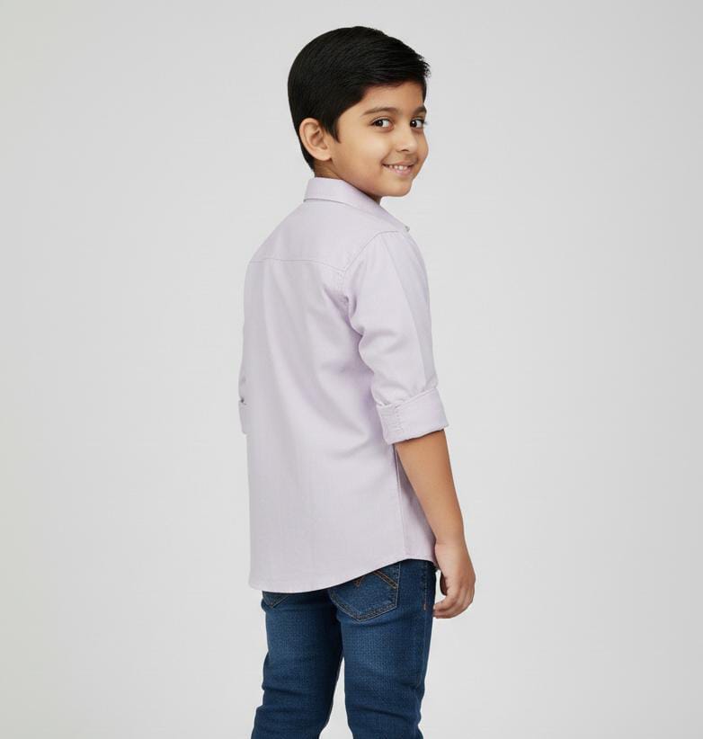 BOYS DOUBLE LAYER PLAIN COTTON SHIRT-LIGHT PURPLE